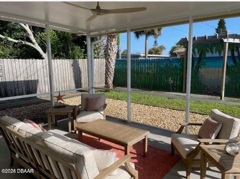 Beachside upgraded solid block 3/2 home with garage. NEW Septic, , Termite Bond, Vaulted wood stained ceilings NEW Full 2nd bath for guests. NEW Master Bed rm with en suite and walk in shower. NEW AC, electrical panel .. Kitchen all NEW with granite countertops, stainless steel appliances inc. a double oven, beautiful subway tile & under cabinet lighting. Washer & dryer NEW septic,. NEW 16x14 lanai has a big ceiling fan, is accessible from master bedroom & NEW composite deck off 3rd bedroom. Comes with all NEW impact strength windows, garage door opener, new electric panel, private well irrigation system, security system . Upgrades throughout. Ormond By The Sea, Ceramic tile in all rooms. Steps to shopping, parks, tennis courts, dog parks, ice cream parlor & restaurants. Close to Ocean. & Beach access.