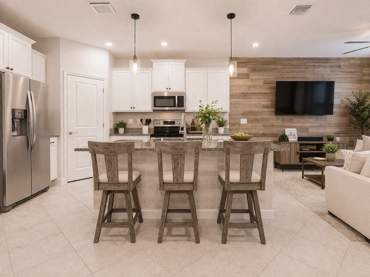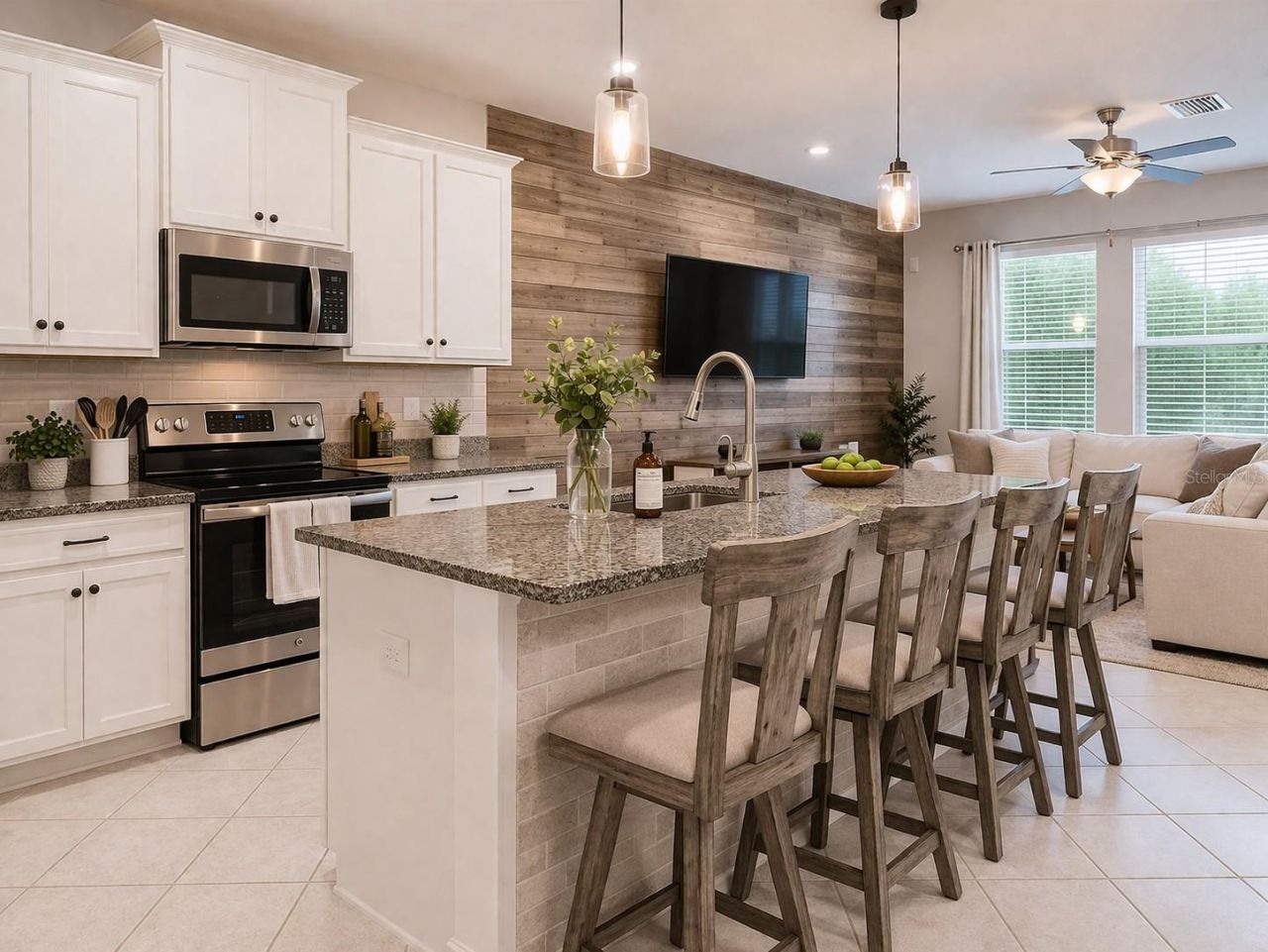 WELCOME HOME TO COMFORT, STYLE, AND CONVENIENCE - JUST 3 MINUTES FROM CITRUS PARK MALL.Located in Bridgehaven at Citrus Park, this beautifully maintained 3-bedroom, 2.5-bath townhouse, built in 2019, offers modern finishes and a smart layout designed for easy living and entertaining.The open kitchen features ample cabinetry with pull-out shelves, a large center island, and a corner pantry, flowing seamlessly into the main living area. Upstairs, all bedrooms are thoughtfully placed alongside a versatile loft and convenient laundry room. The primary suite overlooks peaceful greenspace and includes a walk-in closet and a spacious en-suite bath with dual vanities and an oversized shower.Enjoy the private back porch surrounded by lush landscaping, mature oak trees, and privacy fencing-perfect for relaxing or hosting guests. Additional upgrades include hurricane panels, updated lighting, and a prewired security system.Bridgehaven is a low-maintenance community with an HOA that covers cable, high-speed internet, exterior maintenance, roof reserves, and access to a resort-style pool and cabana. Located in Flood Zone X, this home is also only minutes from the Veterans Expressway, shopping, dining, and Tampa International Airport.This is easy, modern living in a location that truly works for your lifestyle.