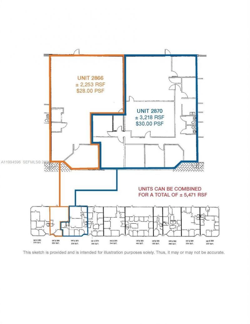 UNIT 2866 CAN BE COMBINED WITH UNIT 2870 FOR A TOTAL OF ± 5,471 RSF¢ One (1) overhead door located in the rear of the property¢ Wide open plan with conference room¢ Polished concrete floor¢ 100% air conditioned¢ Kitchenette¢ Ample parking¢ Across the street from Jackson West Hospital¢ In close proximity to Miami International Airport (MIA), offices, retail centers and industrial parks¢ Excellent location in the heart of Doral¢ Easy access to and from all major thoroughfares like the Palmetto Expressway (SR-826), Dolphin Expressway (SR-836) and Floridas Turnpike